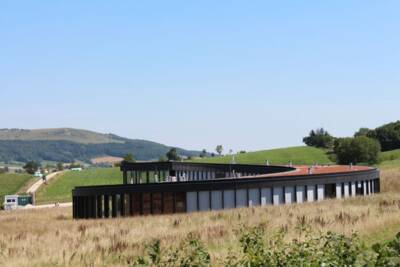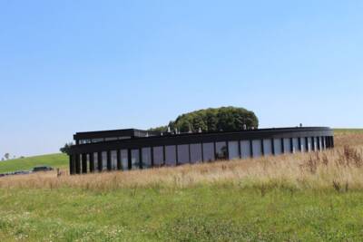 Dieser sieht ein rundes Gebäude vor, das sich sanft auf den Hügel legt. Dann bewegt sich der Besucher durch eine kontinuierliche Steigung von ca. 3% innerhalb der Ausstellungsebene.